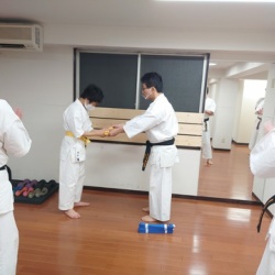 押忍!壮年50歳青帯7級(修業2年3か月。昇級してテンションアップ中。)がお届けします。今日も稽古前に昇級審査合格者3名の新帯の授与がありました。もらった瞬間に、新帯を装着して稽古開始です。本人はやる気アップ。うれしそうな昇級者を見ると、周りも盛り上がりますね。 ...