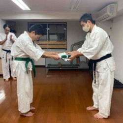 押忍!! 緑帯おじさん(51歳、修業3年6か月)がお届けします。今日は久々の日帰り出張。ということで、予定を前倒し。始発で出発、早めに道場到着です。今日は3か月に1回の岡本師範の稽古でした。稽古前にまず、昇級された先輩の帯の授与から始まりました。おめでとうござい ...