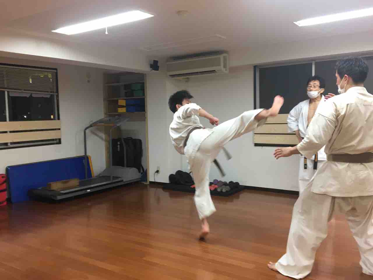 青帯さん、後ろ回し蹴りは一切自主練でもやっておらず、個別にもまともに教えたもらったこともなく、2年間で全く上達なく、大の苦手。