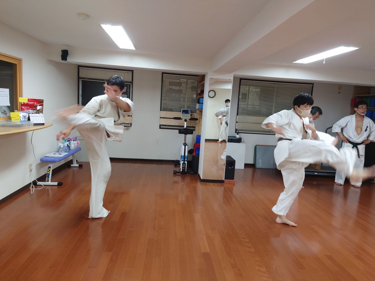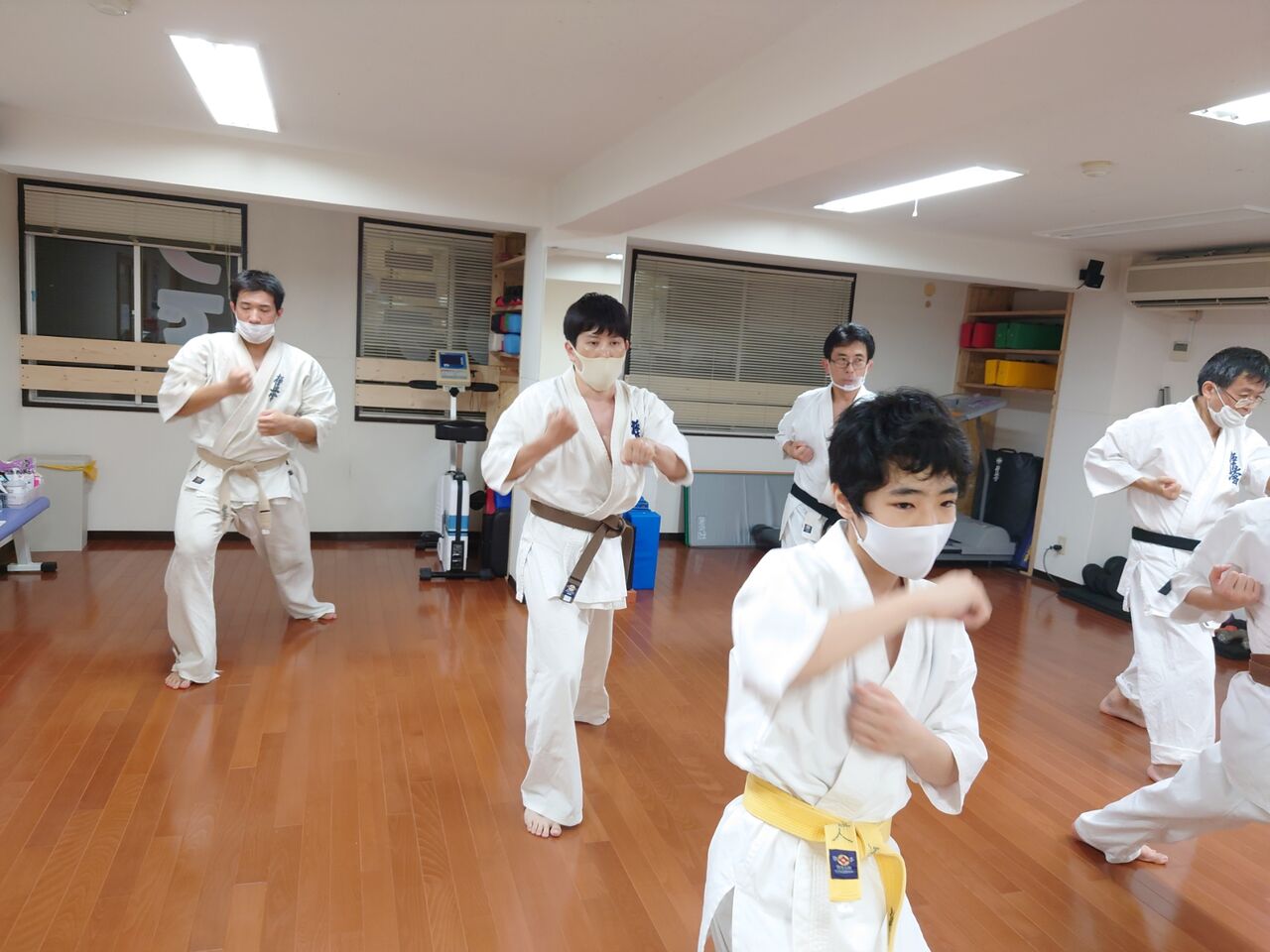 黒帯3人、茶帯4人、黄色帯1人、オレンジ帯1人で、60代〜10代中学生と、活気溢れる稽古場です。