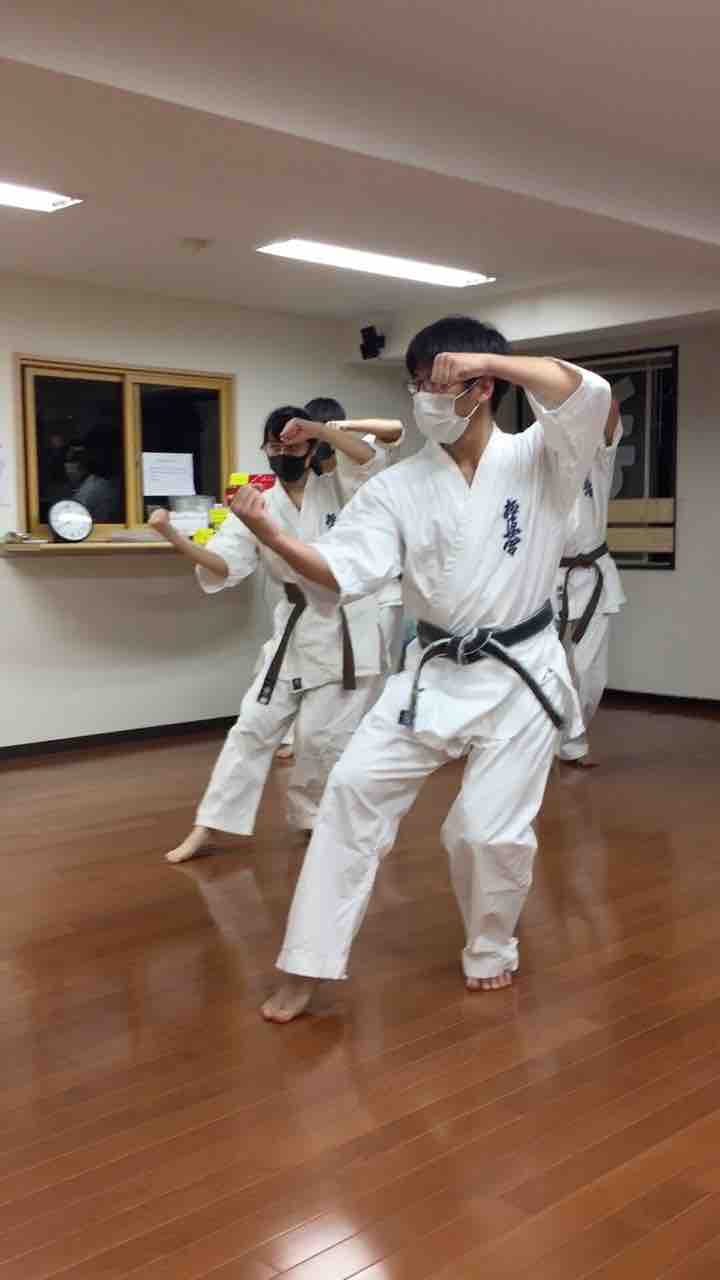 型の途中で補強として、拳立て、スクワット、腹筋、それぞれ20回ずつ行ないました
