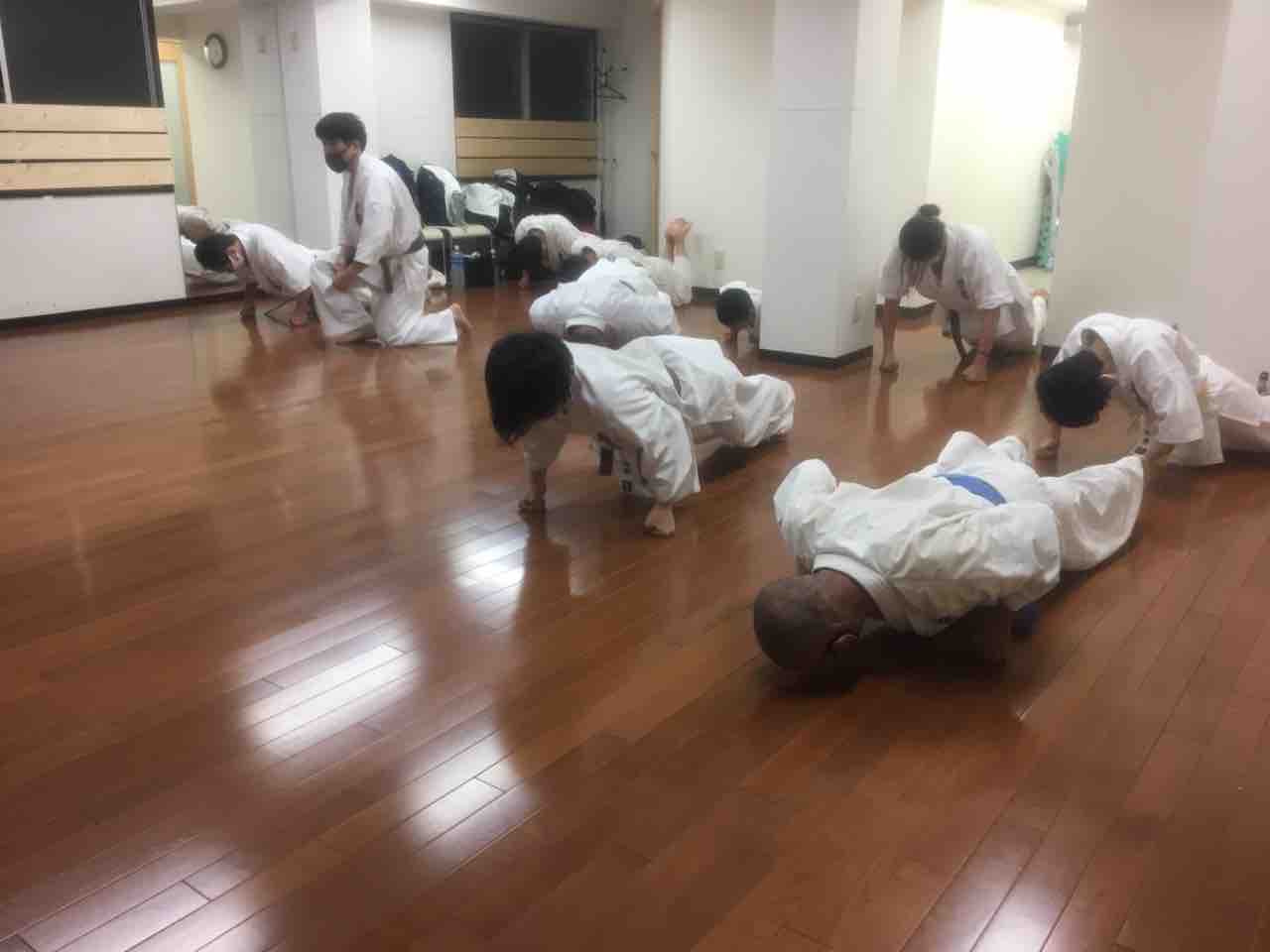 基本稽古、型、移動稽古、合間に補強をしました。