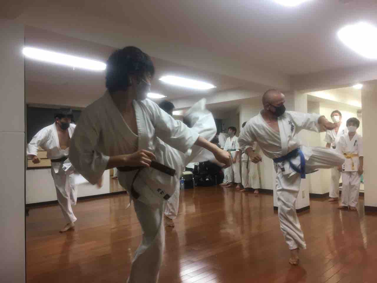 9月の昇級審査で茶帯2級(?)を受審予定の中学生先輩がリードし、うまくやってました。