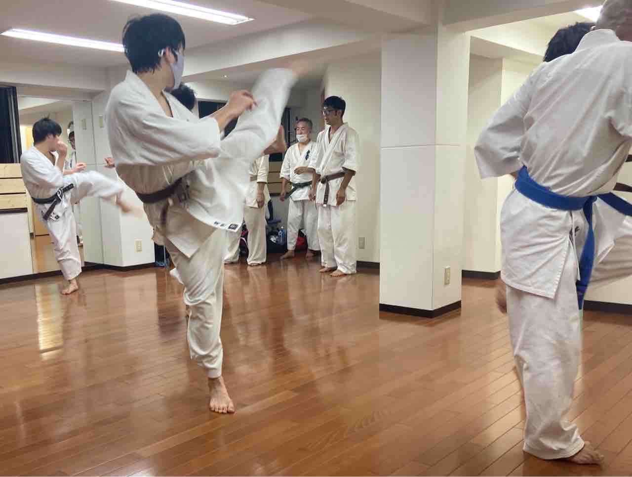 青帯さん得意のエアダメージで叫び声を上げたら、師範から厳重注意いただく時があるので、速いスピードの蹴りが飛んできて怖くてもお口にチャック、デス。