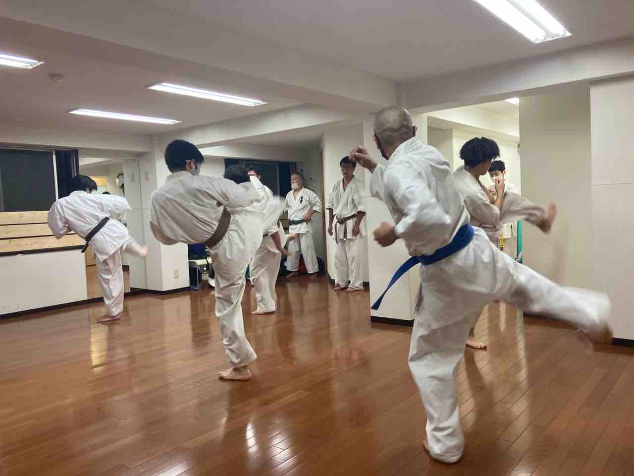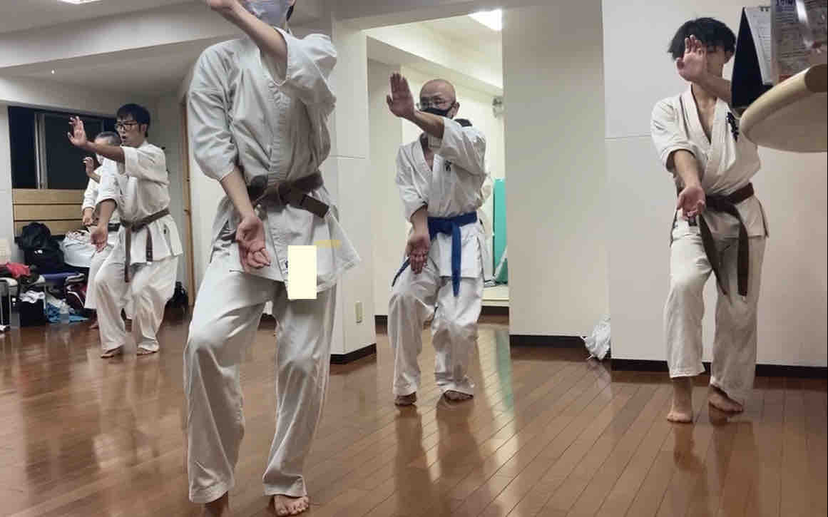 止まってやる、技の稽古とは違い、シャドーでも先輩にエアボコボコにされます。