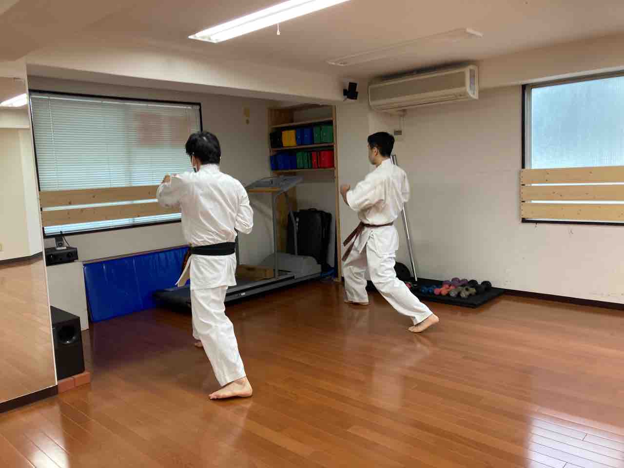 今日はいつものパターンに加え、組み手の構えのコンビネーションがたくさん。ひとつだけ覚えてるものを。
