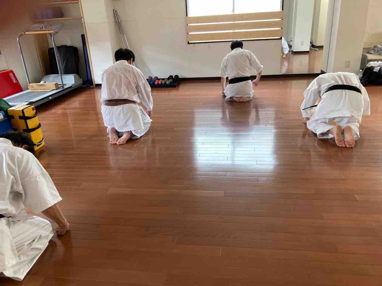 おじさん同士誘い合って、たまに道場外でトレーニングを行ってます。公園で軽い自主トレとか、肝トレとか。