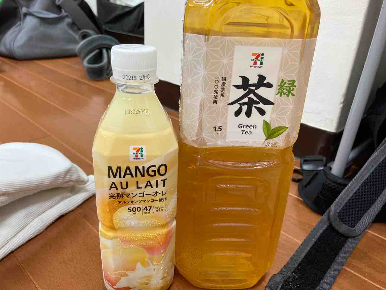 スパーリングが終わったあと、飲み物を1リットル一気飲み。甘いのを買っててよかった。