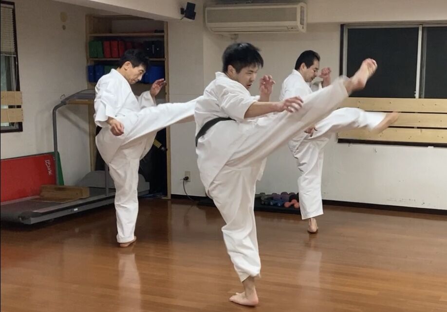 早めに行って鏡の前で前蹴りの稽古。